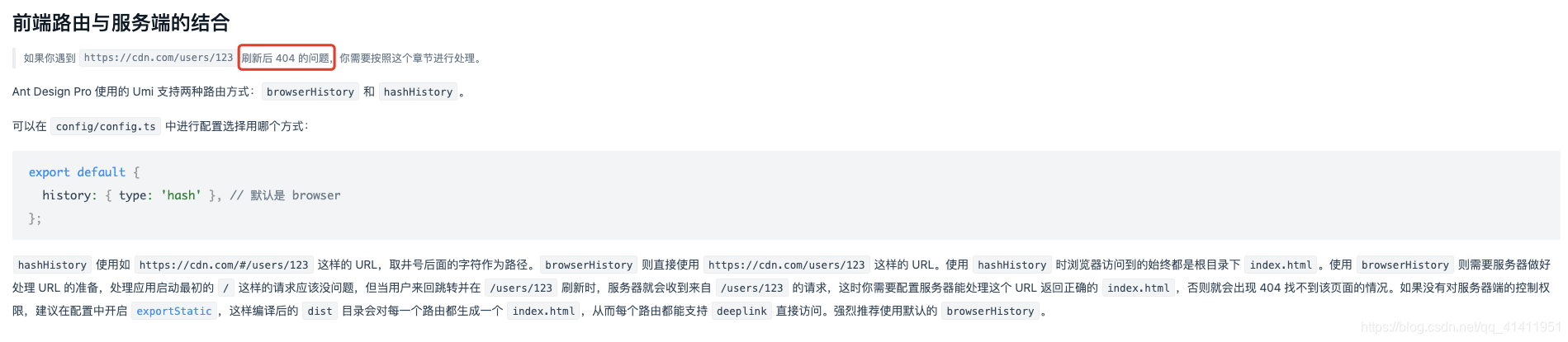 所以简单配置了nginx和docker中的tomcat就直接部署上去了,然后就踩坑了 刷新页面404,我当时很懵逼啊,进页面好好的我就出去再回来就404了,这就让我很难受有四方寻找最后在官方文档找到了: