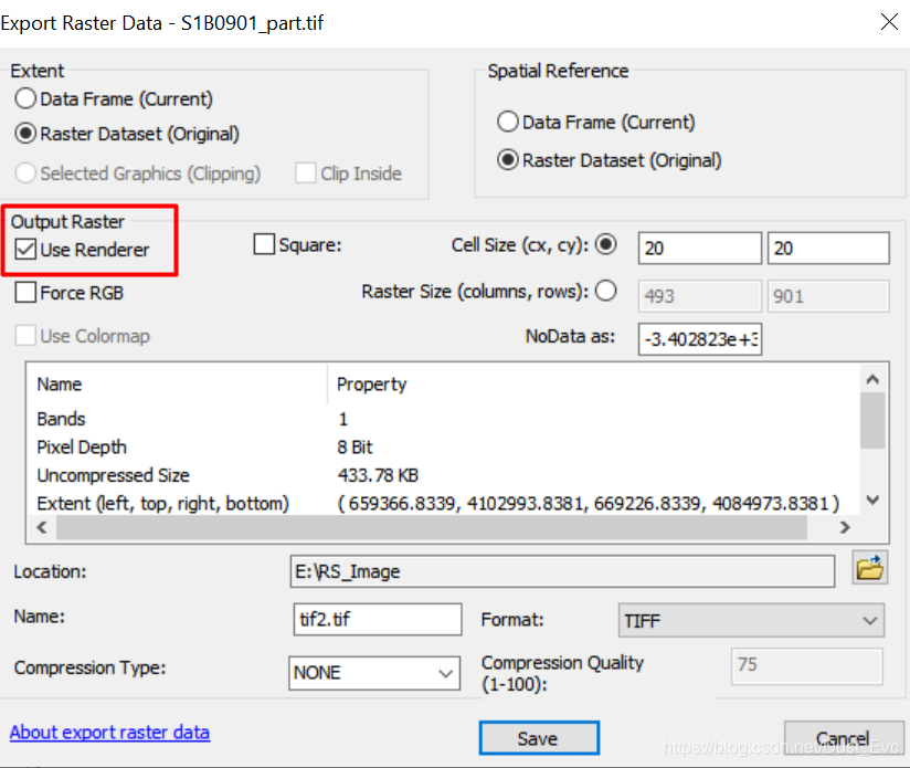 2. 勾选 Use Render。使得数据位数变为8bit。