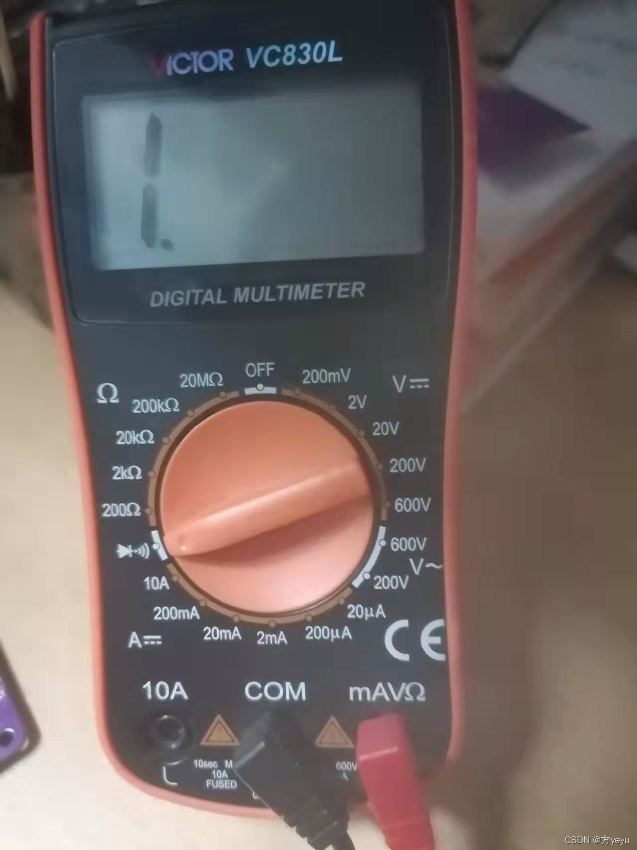 而如果你拿个肖特基二极管--红表笔接正极,黑表笔接负极,此时会显示二极管的电压,大约0.2V左右。而如果此时红黑表笔反接,出现如下情况,表示电路通路。(比如将系统的电源VCC(GND)红表笔接,另一个VCC(GND)相接黑表笔)也会出现如下情况