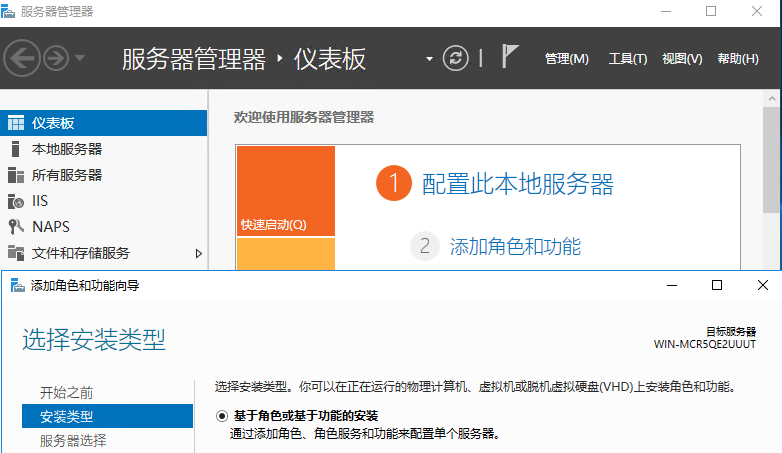 1、服务器管理器-添加角色和功能-基于角色或者基于功能的安装