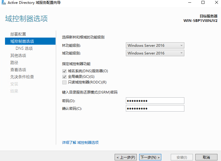 6、下一步,输入密码和确认密码,一直下一步直到安装结束重启服务器
