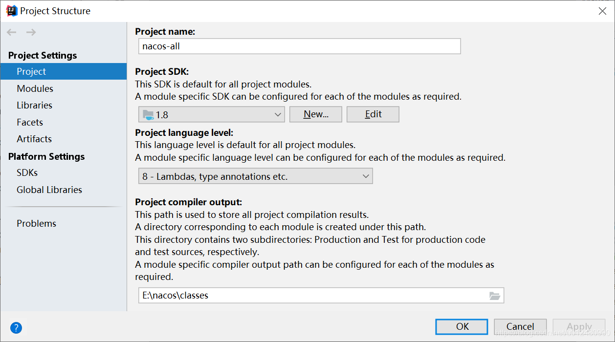 1、打开File->Project Structure,确认Project SDK是Java1.8,如图: