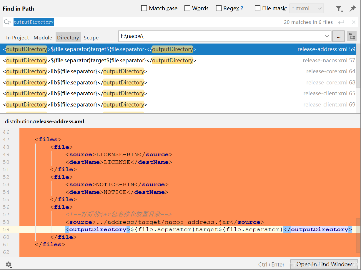 Edite->Find->Find in Path,查询"outputDirectory",将文件分隔符改为${file.separator}