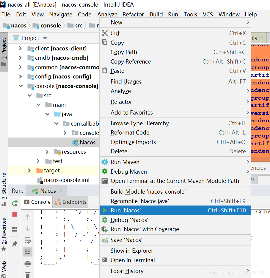 从git上下载Nacos源码后,Intellij打开nacos目录,如图: