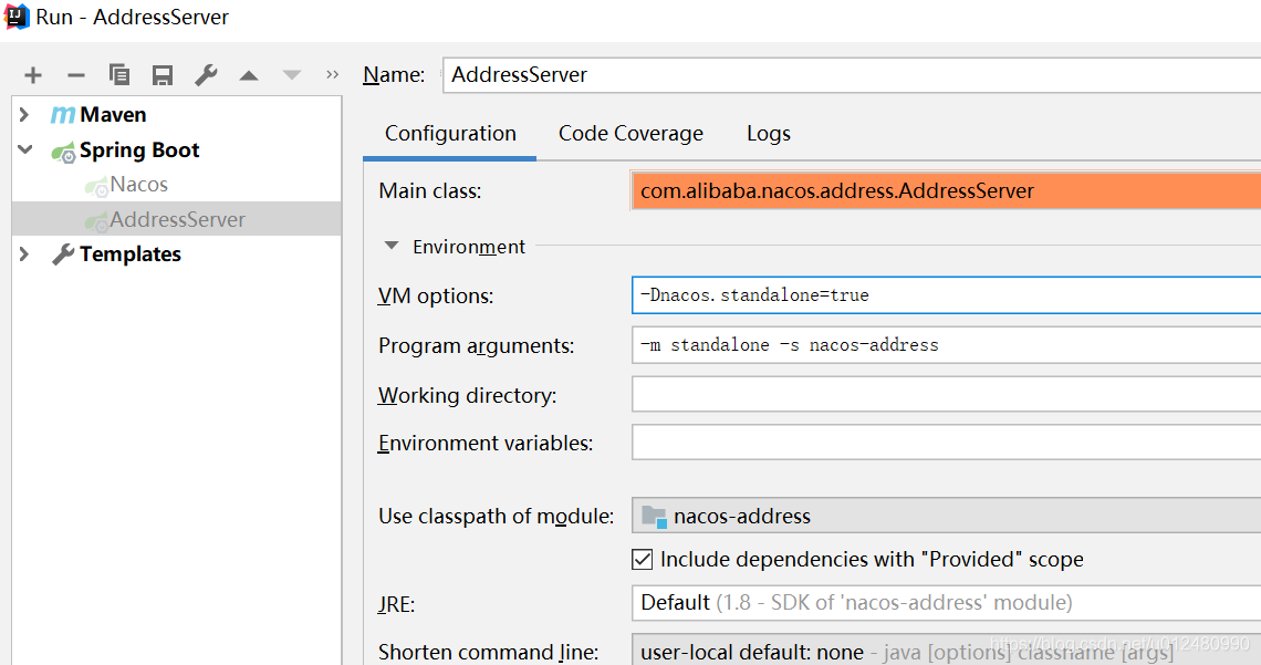 第二种,在intelliJ中运行、调试nacos-address设置如下: