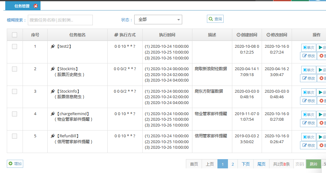 BEGIN(1,"运行"),EXCEPTION(2,"异常"),COMPLETE(3,"完成");
