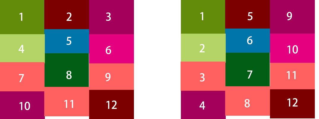 2.flex 弹性布局实现瀑布流是左右滚动,另外两种方式是上下滚动;