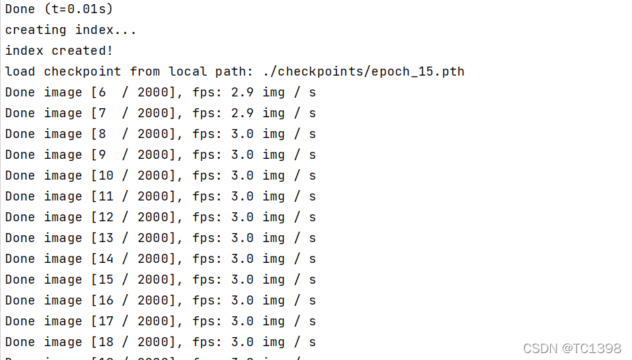 print(f'Done image [{i + 1:<3}/ 2000], fps: {fps:.1f} img / s')