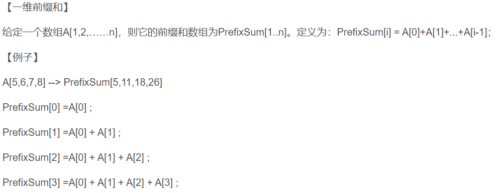 前缀和可以简单理解为「数列的前 n项的和」,是一种重要的预处理方式,能大大降低查询的时间复杂度