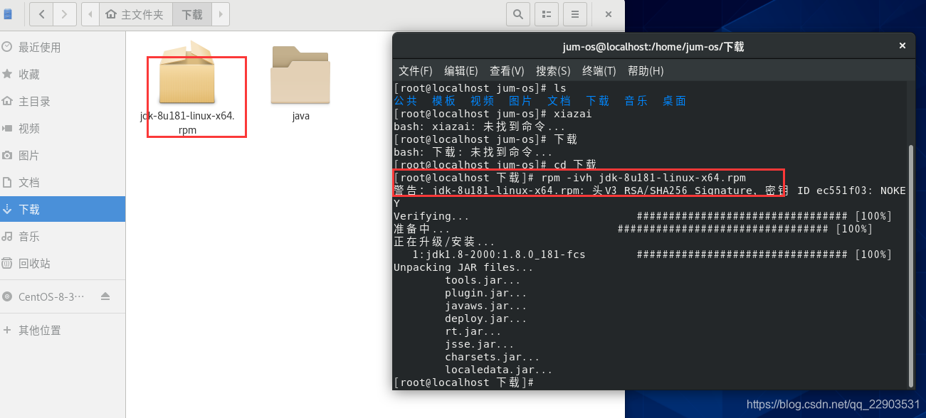 命令代码为:rpm -ivh jdk-8u181-linux-x64.rpm
