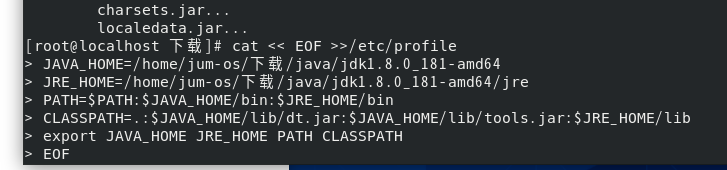 [root@localhost 下载]# cat << EOF >>/etc/profile