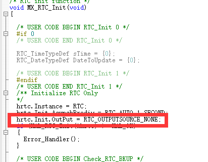 然后打开rtc.c文件将MX_RTC_Init函数里面的这条指令按照图片修改,改为关闭output就可以使PC13正常使用啦
