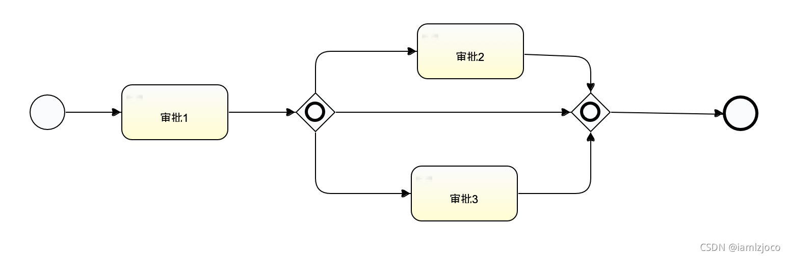 如上图,包含网关是成对出现的,如果只出现一个是不生效的,上图并行的三条线只要有一条被满足都可以往下走。