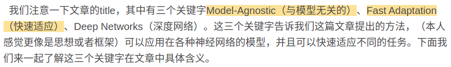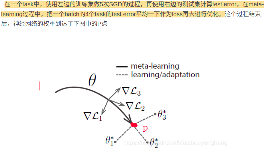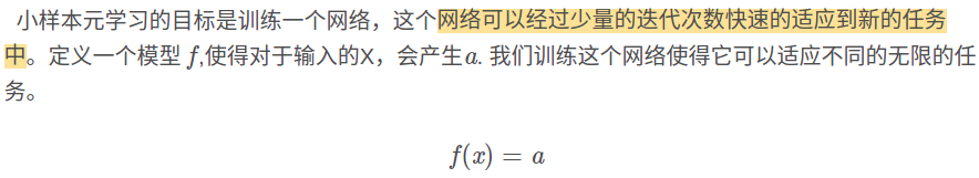 下面这段, 元学习的主题: 能够只通过少量样本就是快速学习到知识. 即所谓的学习学习. 而如何实现这点呢?就是靠下面这段, 即: 在训练的过程对模型的要求本来就是快速适应: