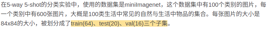 下面这段有一个需要注意的点: 就是训练, 测试, 验证的划分并不是简单按照数量划分, 而是划分类别: 即64个类别, 20个类别, 16个类别. 验证和测试集的类别是训练集当中没有的.
