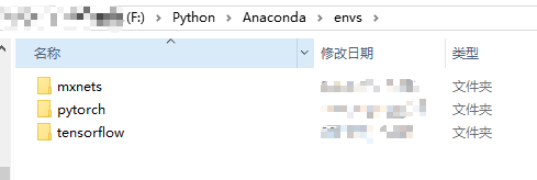 创建的虚拟环境在你Anaconda安装目录下的envs文件夹里。比如说我的就是在F:\Python\Anaconda\envs进入该文件夹就能看到刚刚生成的虚拟环境文件夹(我已经创建三个虚拟环境)。