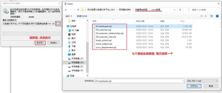 create database scrm default character set utf8mb4 collate utf8mb4_unicode_ci;- 将项目资料中, 提供的业务数据集导入到这个库中