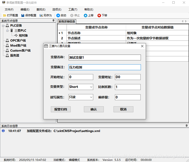 通信测试平台仅仅只是用于测试通信是否正常,实现正常的单变量数据读取和写入。但是如果是项目级别开发,还需要有一套更完善的通信架构,这里我采用的是自主开发的上位机通信配置一体化软件(简称CMS配置软件)。