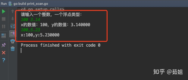 fmt.Println("请输入一个整数,一个浮点类型:")
