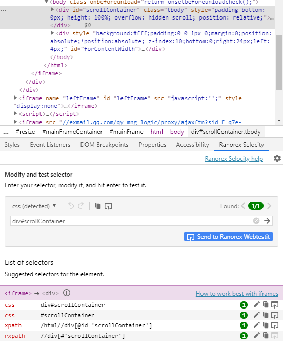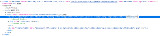 F12查看页面元素,页面有iframe嵌套,且可以确定滚动条的元素具有Id、class。