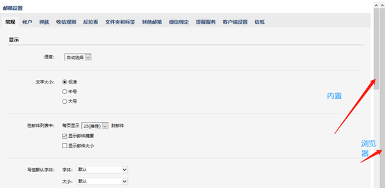 介绍还是使用腾讯企业邮箱,查看邮箱设置-常规页面信息设置项很多,需要上下滑动滚动条进行查看或修改。