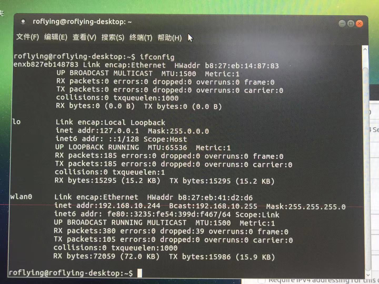 重启后,连接你的无线。然后在命令行中输入ifconfig命令查看本机IP。wlan0一栏中,inet addr是本机IP,Mask是子网掩码
