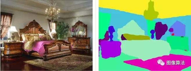 在上面的例子中,属于床的像素被分类在类“床”中,对应于墙的像素被标记为“墙”等。