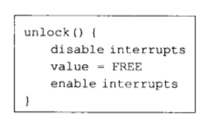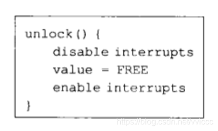 - 将自己放到等待队列之前(将发生信号丢失而造成死锁,类似于sleep与wakeup原语;假设A线程调用lock获得锁,进入else部分;如果在启用中断的时候立即发生中断,则持有锁的线程获得机会运行并释放锁,但是由于此时没有线程处于锁等待状态,因此释放锁的线程不会释放任何线程;之后,线程A将自己放到等待锁的队列;而此时由于锁已经释放,线程A将无法从等待队列中被叫醒,死锁发生;这种方式不行)