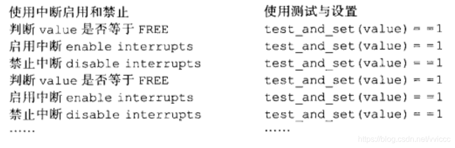 测试与设置和中断禁止都使用了繁忙等待,这里比较一下两者的代码: