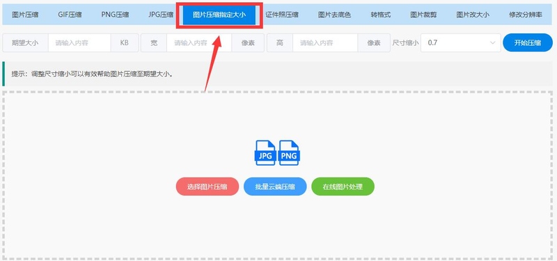 按照上述步骤即可将图片压缩到想要的大小了。除此之外压缩图还提供图片转格式功能。
