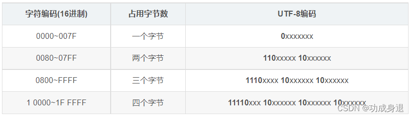 这个时候,UTF-8编码规则发挥作用的时候到了,它是一种可变长度的编码规则,根据不同情况可以占用1~4个字节不等。