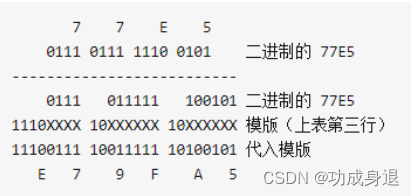 汉字【知】在unicode编码中表示为U+77E5,77E5转换到二进制为111 0111 1110 0101;再看UTF-8编码规则中,占用三个字节的字符对应的编码中 1110(第1个字节前三位) 10(第2个字节前两位) 10(第3个字节前两位)是固定位占有的,那么三个字节剩下的位总共还有16个,16个位刚好等价于两个字节,能够表示大部分常用汉字了!我们只要把111 0111 1110 0101 这16位按顺序依次填入剩余待定位,最终得到的三个字节 【111001111001111110100101】 就是汉字【知】在UTF-8格式中的编码!