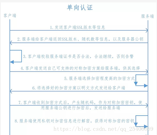 8、服务器收到客户端返回的加密信息后,使用自己的私钥进行解密,获取对称加密密钥。 在接下来的会话中,服务器和客户端将会使用该密码进行对称加密,保证通信过程中信息的安全。