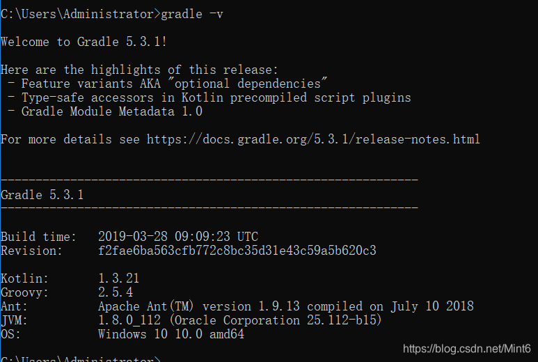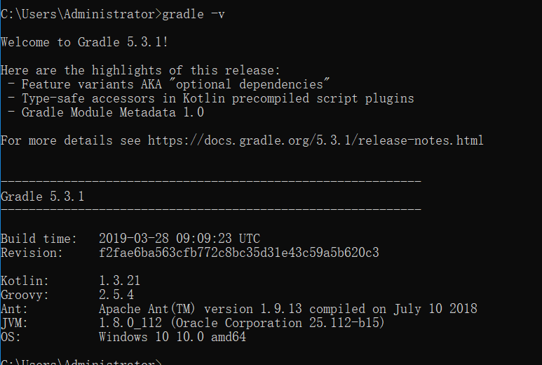 测试效果:win+r打开cmd,输入gradle -v,出现以下效果正常