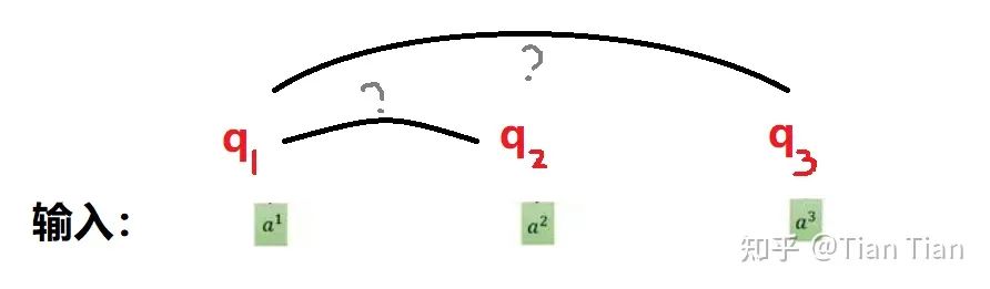 注意力机制说白了就是要通过训练得到一个加权,自注意力机制就是要通过权重矩阵来自发地找到词与词之间的关系。因此肯定需要给每个input定义tensor,然后通过tensor间的乘法来得到input之间的关系。那这么说是不是给每个input定义1个tensor就够了呢?不够啊!如果每个input只有一个相应的q,那么q1和q2之间做乘法求取了a1和a2的关系之后,这个结果怎么存放怎么使用呢?而且a1和a2之间的关系是对偶的吗?如果a1找a2和a2找a1有区别怎么办?只定义一个这模型是不是有点太简单了。