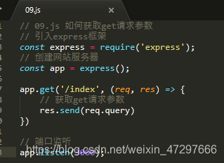 app.get('/', (req,res) => { //获取GET参数req.query console.log(req.query); }); app.post('/', (req,res) => { //获取POST参数req.body console.log(req.body); }) |