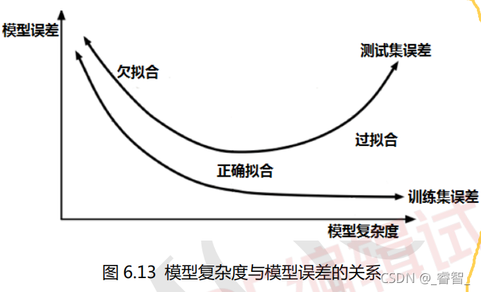 训练集的误差是随着模型复杂度的提升而不断降低的,测试集的误差是随着模型复杂度的提升而先下降后上升。
