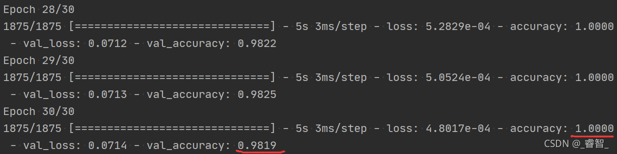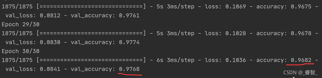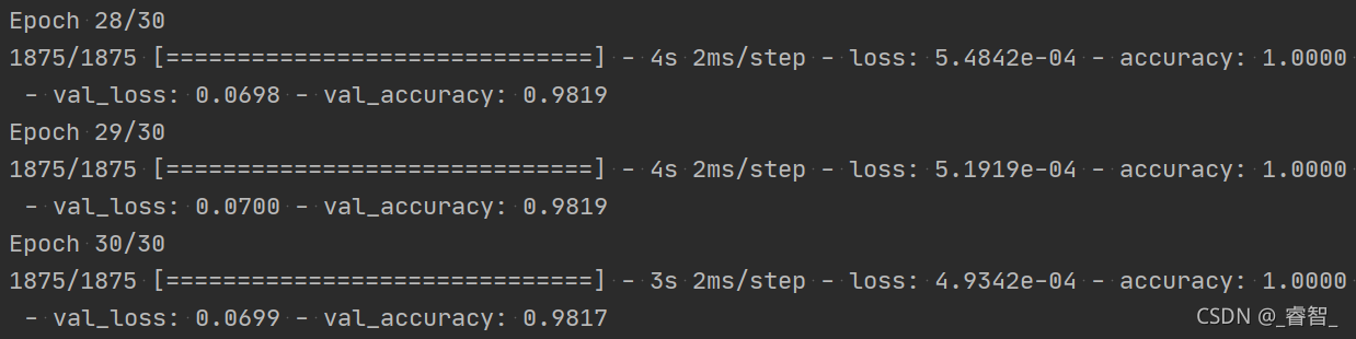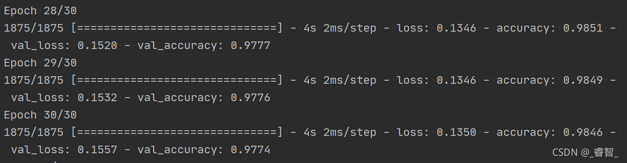 history = model.fit(train_data, train_target, epochs=30, batch_size=32, validation_data=(test_data,test_target))效果: