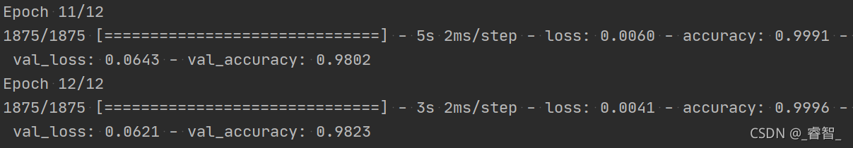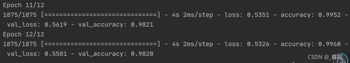 history_smooth = model_smooth.fit(train_data, train_target, epochs=12, batch_size=32, validation_data=(test_data,test_target))效果: