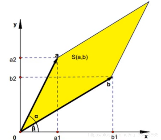 aXb = a1b2 - a2b1 几何意义就是 aXb是a b组成的平行四边形的面积