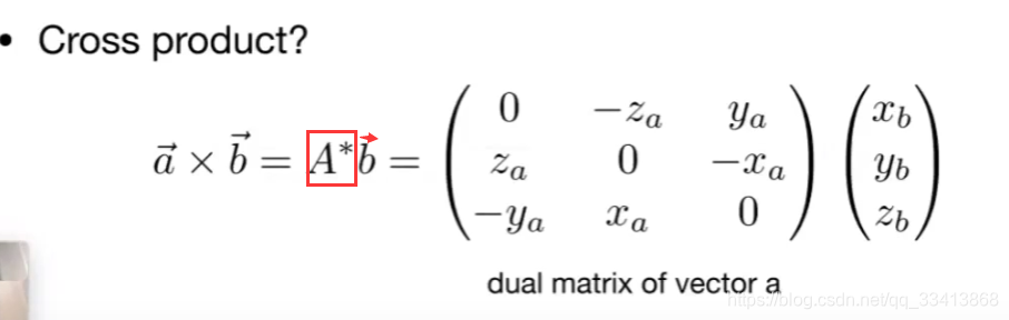 叉乘的矩阵形式,a向量变成A* 然后乘b向量