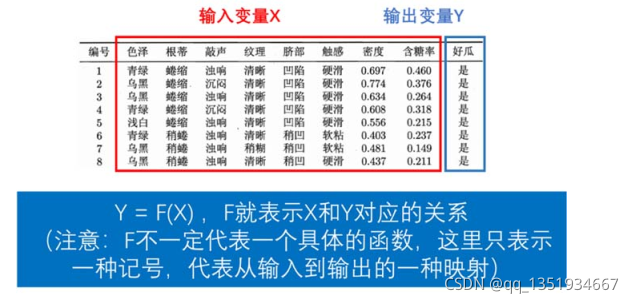 通过一个问题引入:夏天你是怎么买到一个好的西瓜的?你是通过自己的经验来购买西瓜的吧,经验又是通过自身长期以来对西瓜知识的累积来的把。比如:好西瓜有三个指标:色泽青绿、根蒂蜷缩、敲声浑浊,你就通过这三个指标来判断好西瓜,这是靠人类自己就能够完成的。而机器学习就是这样一个过程,它通过对以往数据(这里可以指上面的经验)的训练,在面对新的情况时,做出判断(这里可以指上面的判断瓜的好坏)。