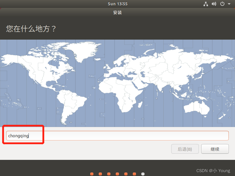 点击安装后,在对话框下,点击继续,然后就是输入你在的哪个地方,好像只能输入拼音或英文