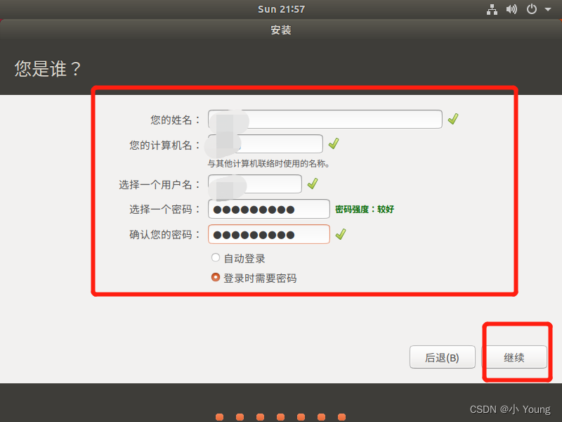 输入你的信息,名字和密码不要输入得太长了,后面使用命令安装软件很麻烦的