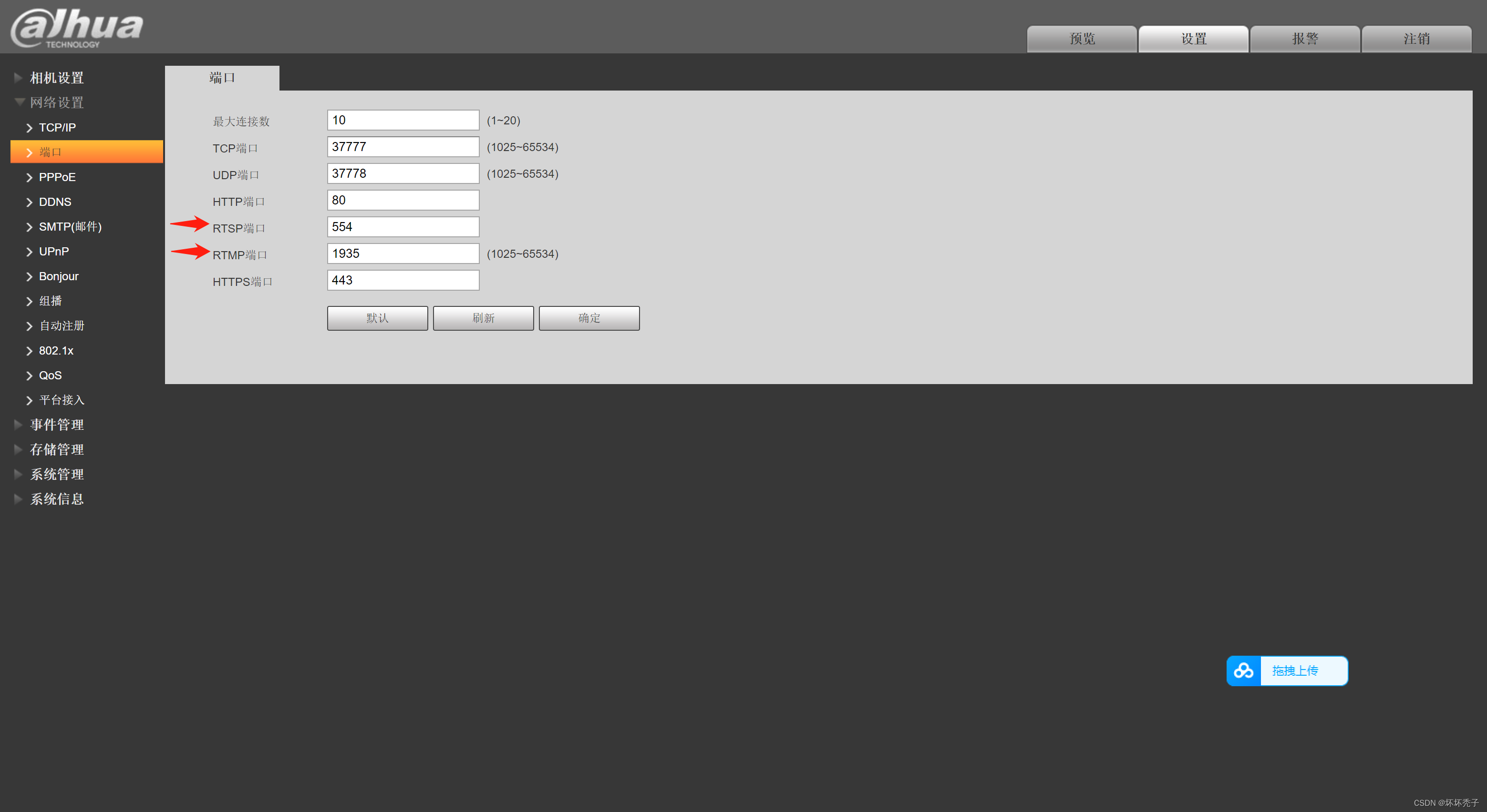 port: 上面咱们看到的rtsp的端口,默认是554,