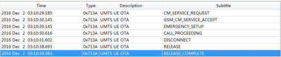 UMTS(GSM、WCDMA、TD-Scdma)网络下紧急拨号的信令流程与普通呼叫的信令流程相似,只在少许的信令和参数上有所不同。如下空口日志截图是在无卡状态下抓的紧急呼叫流程图。