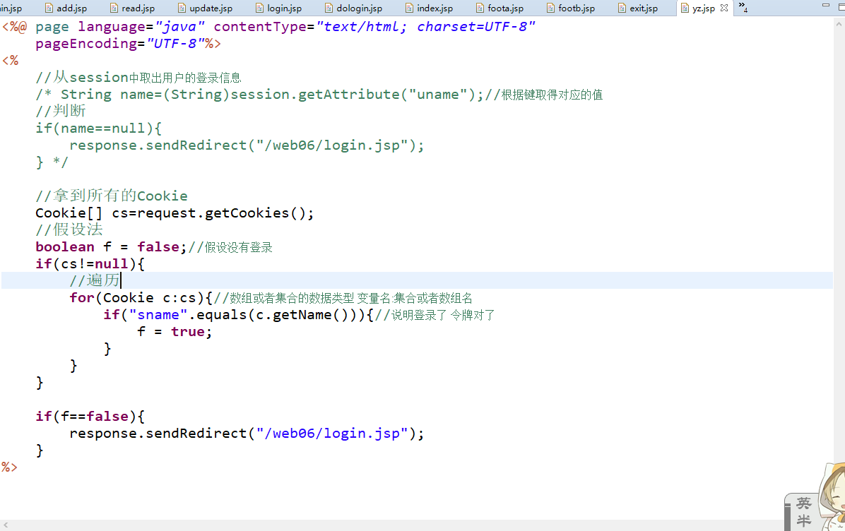 这里用了包含的方法yz.jsp是为了防止没有登录而从其他页面也可以进入 这里进行了判断