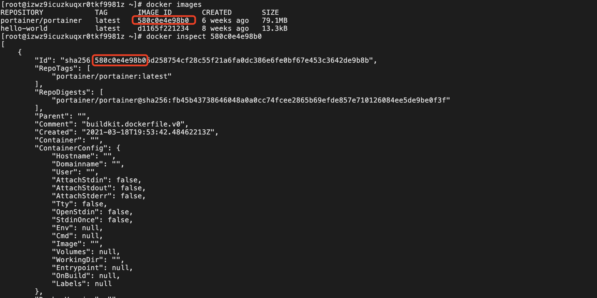 docker inspect 578c3e61a98c #查看指定镜像id 镜像的详情
