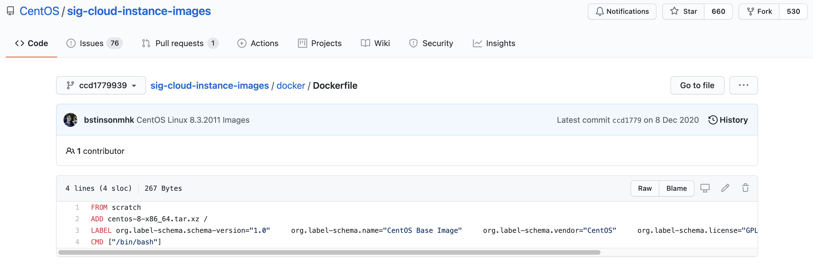 标红的地方点进去,我们看下它的dockerfile(dockerfile是指构建docker镜像的指令脚本)