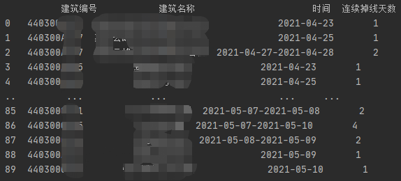 return df.reindex(columns=["建筑编号", "时间", "连续掉线天数"], fill_value="{0}".format(BUILD_ID))